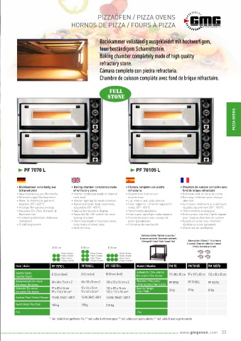 Backkammermaße / Dim. internal 68 x 68 x 15 cm x 2 68 x 103 x 15 cm x 2 105 x 70 x 15 cm x 2 Pizzaofen / Pizza oven / PF 7070 L PF 70105 L PF 10570 L