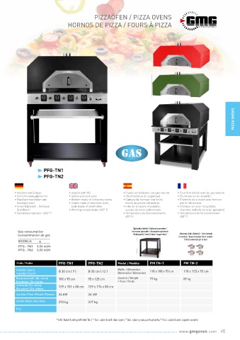 Gas consumption Accesorios opcionales / Accessoires optionnels