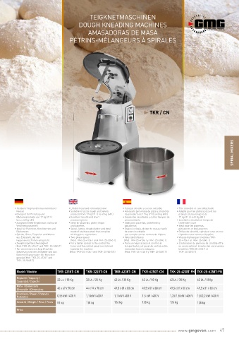 • Geeignet für Pizzateig und products from 17 kg (21 l) to 43 kg (48 l) de panadería de 17 kg (21 l) a 43 kg (48 l) produits de boulangerie de