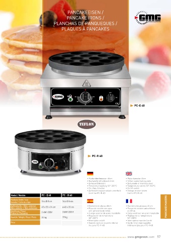 • Plattendurchmesser 40cm 45 x 52 x 24 cm ø 40 x 20 cm • Diámetro de placas 40cm • Diamètre des plaques 40 cm PANCAKE MAKERS